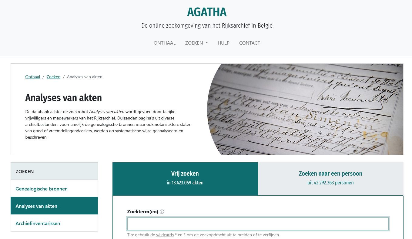 De AGATHA-zoekrobot Analyses van akten werd deze maand geüpdatet met een correctie van de problemen bij de weergave van leeftijden en beroepen, en bij het sorteren van kolommen. Bovendien werd de zoekfunctie “Vrij zoeken” beter afgestemd en uitgebreid.